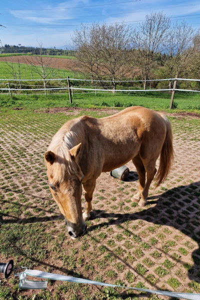 Unser lieber Johnny ist, wie seine Farbe schon besagt, ein echter Goldschatz. Sehr sanft und menschenbezogen liebt er es wenn man sich mit ihm beschäftigt und ihm vielleicht auch die eine oder andere interessante Sache auf den Paddock legt, die dann ausgiebig untersucht werden kann. In seinen jüngeren Jahren war er auch als Salto-Johnny bekannt und hat mit Abstand den schnellsten Galopp in Tieflage. Wer übrigens meint, dass Quarters keine wunderschönen Ponyhaare haben können, hat sich geirrt - obwohl es über Johnny anfangs hieß, ihm würden keine Haare an der Stirn wachsen, zeigte sich schnell das Gegenteil. We love you!